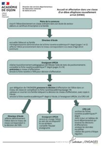 > extrait de la Circulaire académique du 4 juin 2019 relative aux principes et modalités d’accueil et de scolarisation des élèves allophones nouvellement arrivés -EANA- dans les écoles, collèges et lycées de l’académie de Dijon :